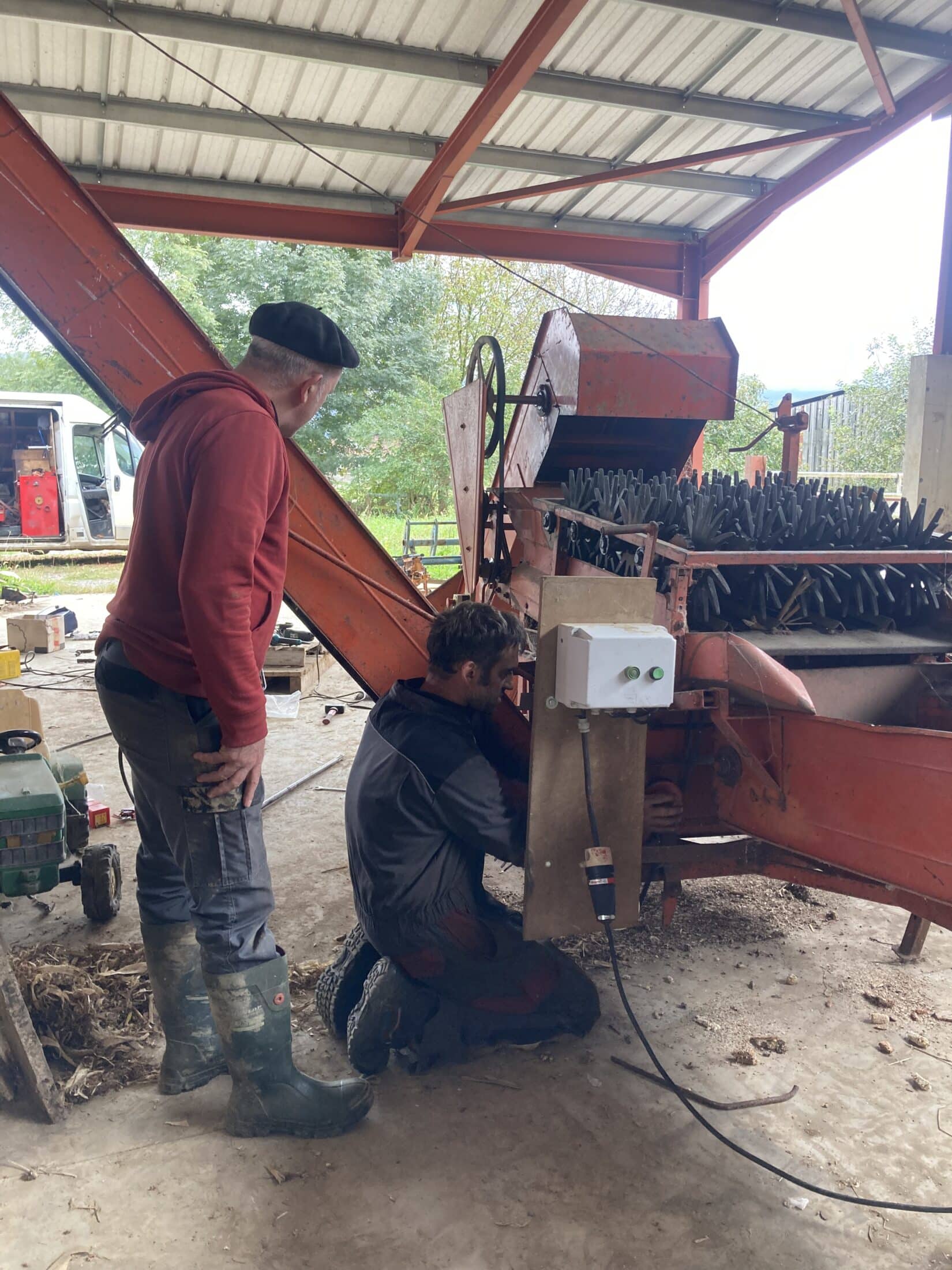 A mon arrivée à la ferme de Jon Harlouchet, les paysans se creusent la tête sur la façon de réparer l’effeuilleuse mécanique : problème de tenseur ou de courroie ? Cette machine mécanique provient d’une vente de seconde main, elle est parfaitement adaptée à leurs cultures, mais attention aux doigts.